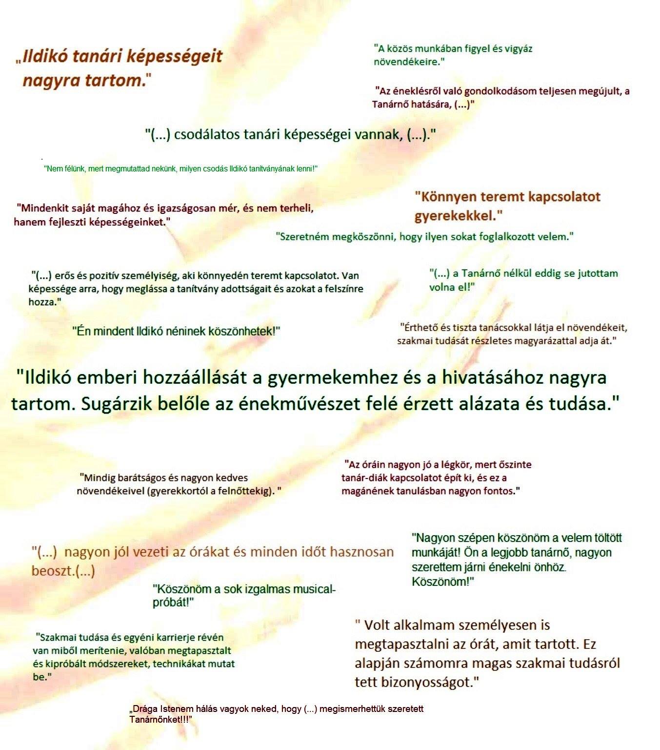 1 winning on a National Competition, 1 special prize on a National Competition, 1 winning on a Regional Competition, 1 winning on a County Competition, 1 third prize on a National Competition. 1 student was in semi-final in a Hungarian National Television Competition (Hungarian X Factor.)