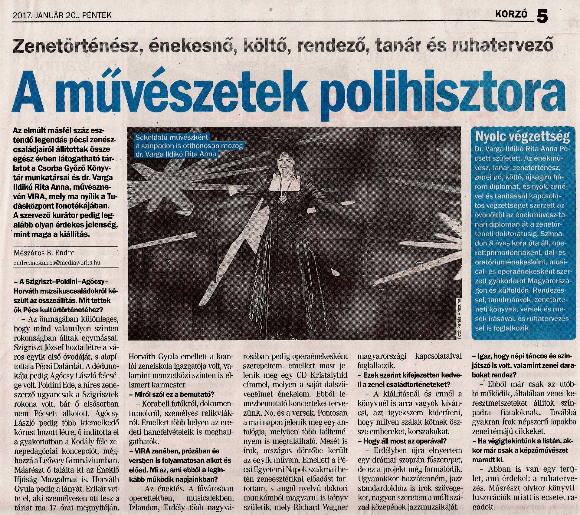Pécs, Pécsi Dunántúli Napló, 2017. január 20., péntek, 5. oldal, Korzó rovat.
